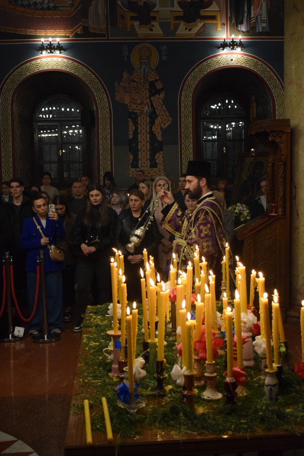 У навечерје велике суботе, 10. априла 2026. године, Његово Високопреосвештенство Митрополит нишки г. Арсеније служио је јутарњу службу са статијама у нишком Саборном храму Силаска Светога Духа на Апостоле.