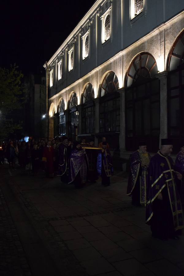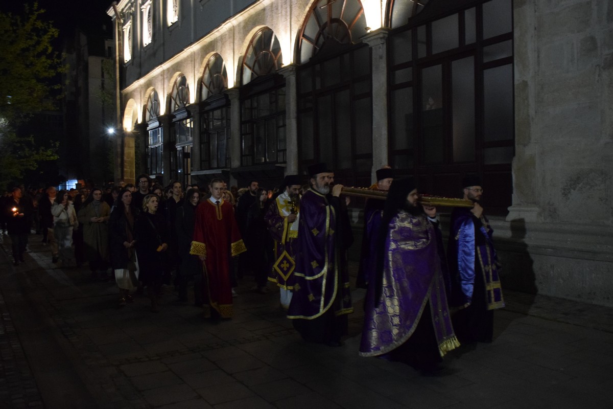 После појања Великог славословља, свечани литијски ход извршен је неким од главних градских улица, окончавши се пред Гробом Господњим у средини храма. Богослужбено сабрање је потом завршено након читања пригодних зачала из Старог и Новог Завета.