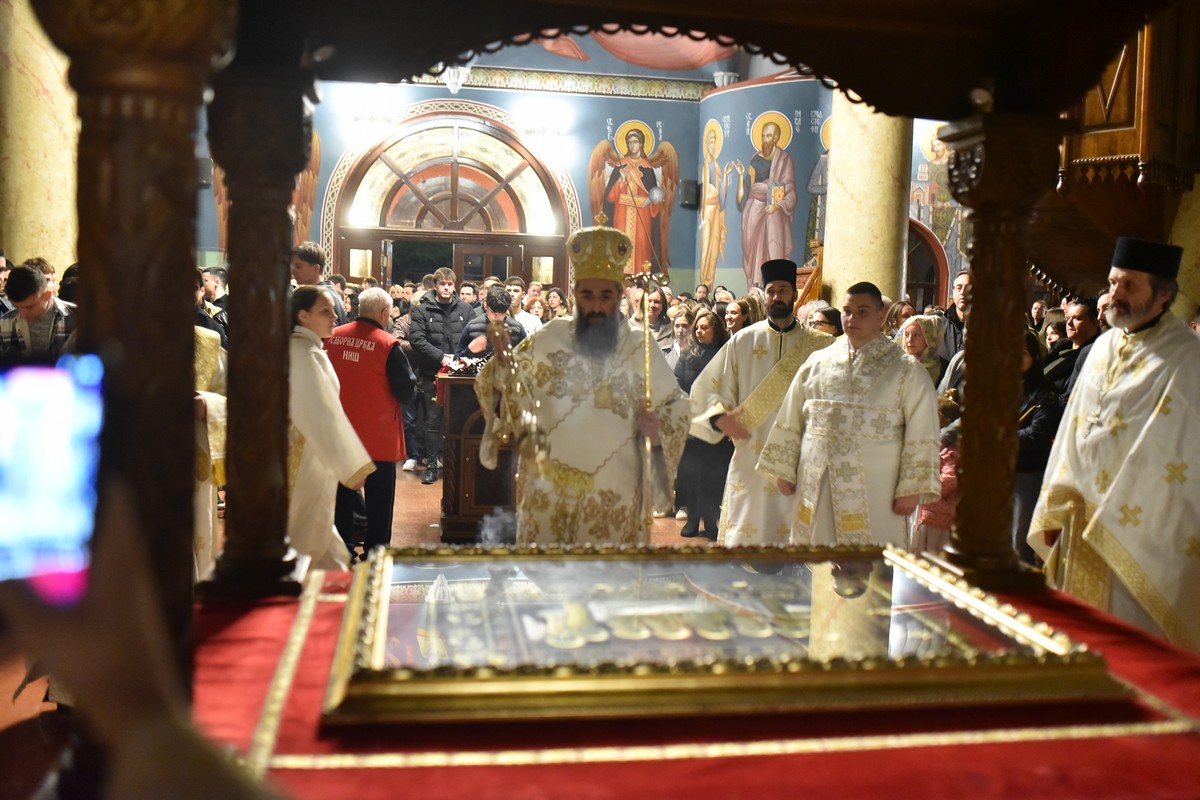 Високопреосвећеном Митрополиту на овом евхаристијском сабрању саслуживали су протојереј-ставрофор Бранислав Цинцаревић, старешина храма, протојереј-ставрофор Ненад Микић, парох први, протојереј Миодраг Павловић, Архијерејски намесник први нишки, јеромонах Пантелејмон Мијаиловић, протођакон Ђорђе Филиповић и протођакон Никола Ераковић.