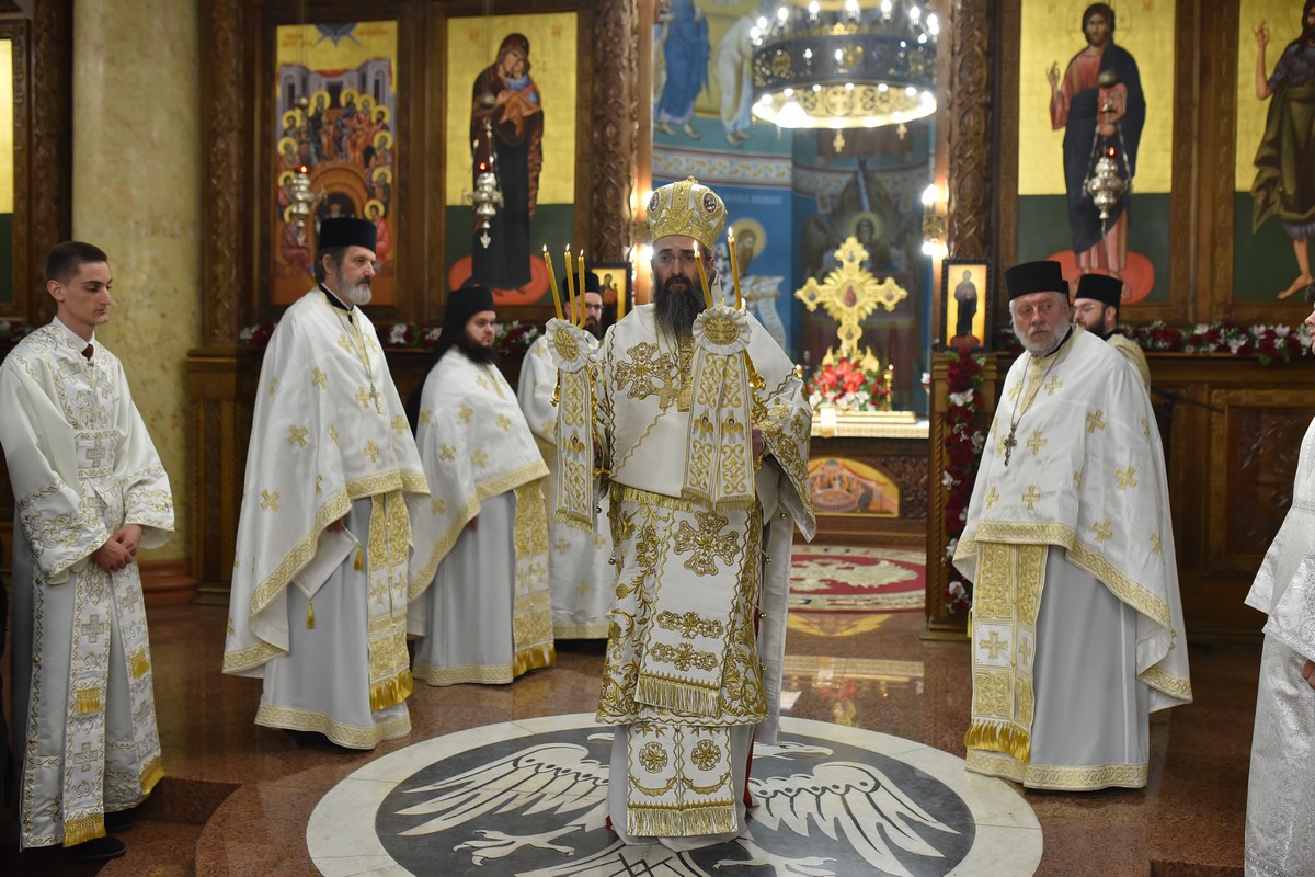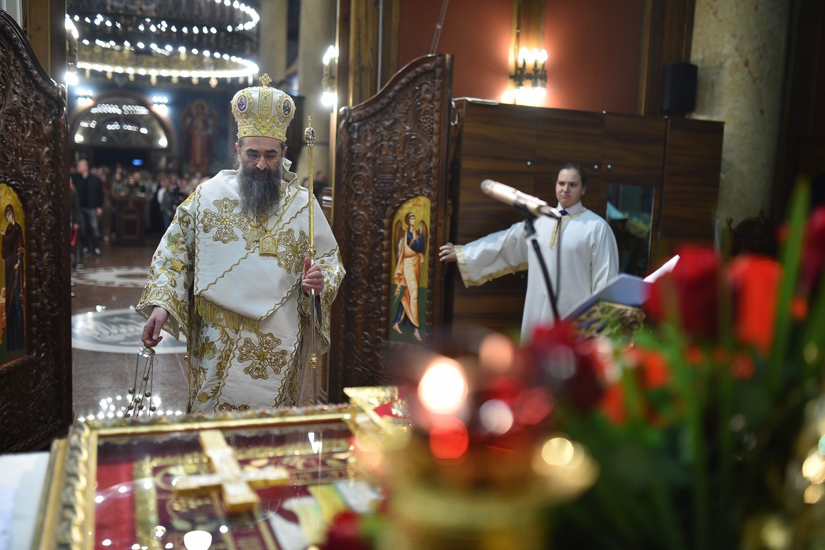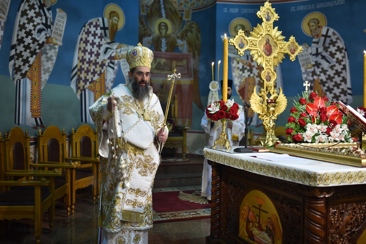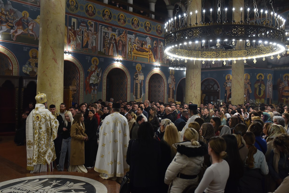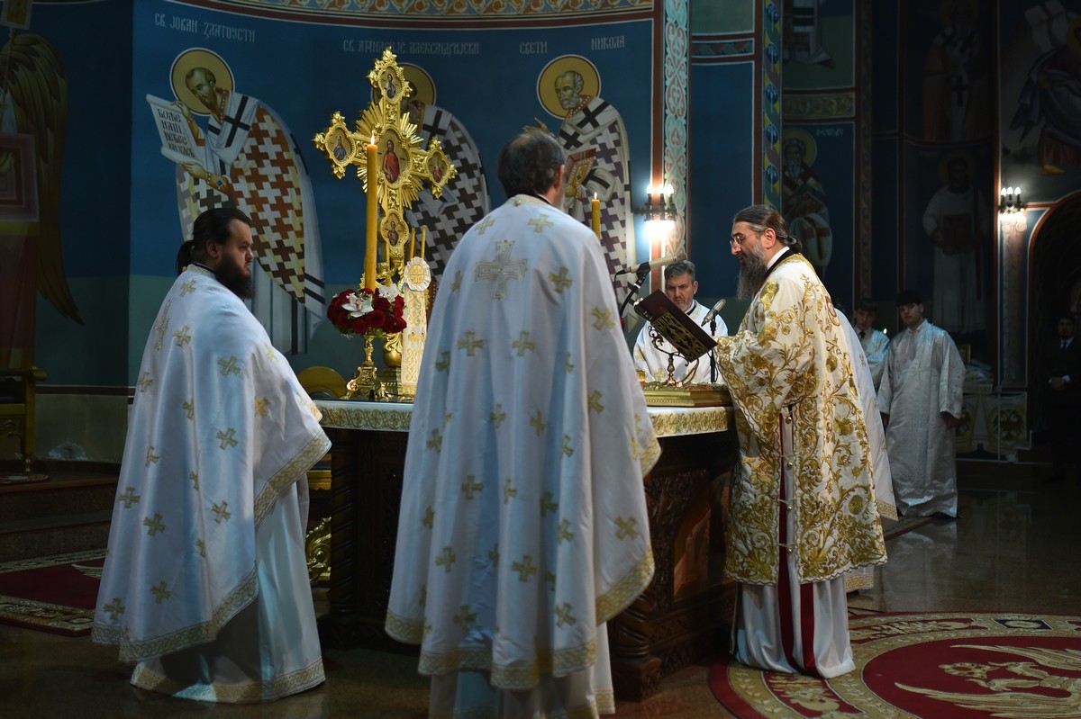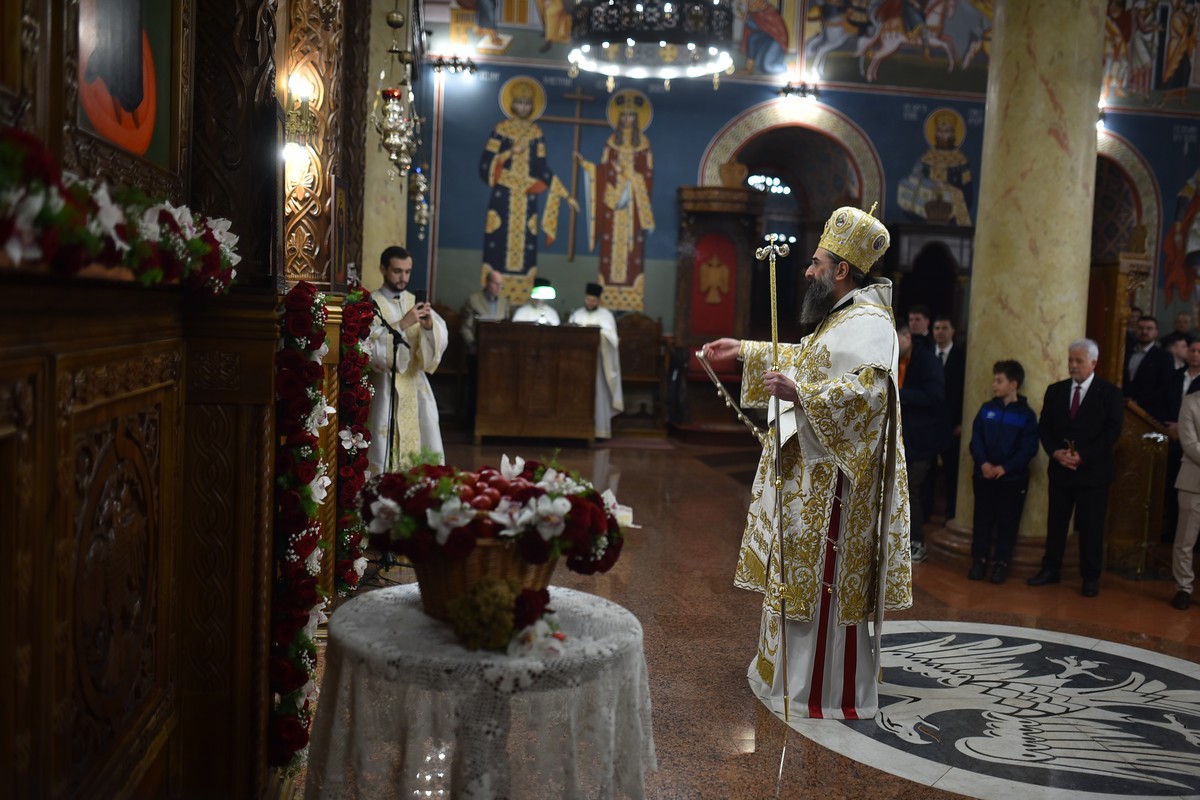 По уласку у храм настављена је јутарња служба, са посебно наглашеним празничним каноном, који својом дубином и радосном поруком све верне уводи у посебно духовно расположење.