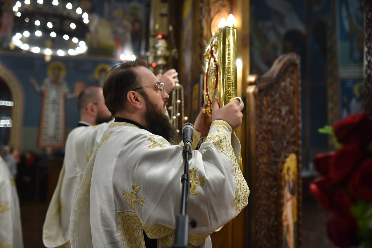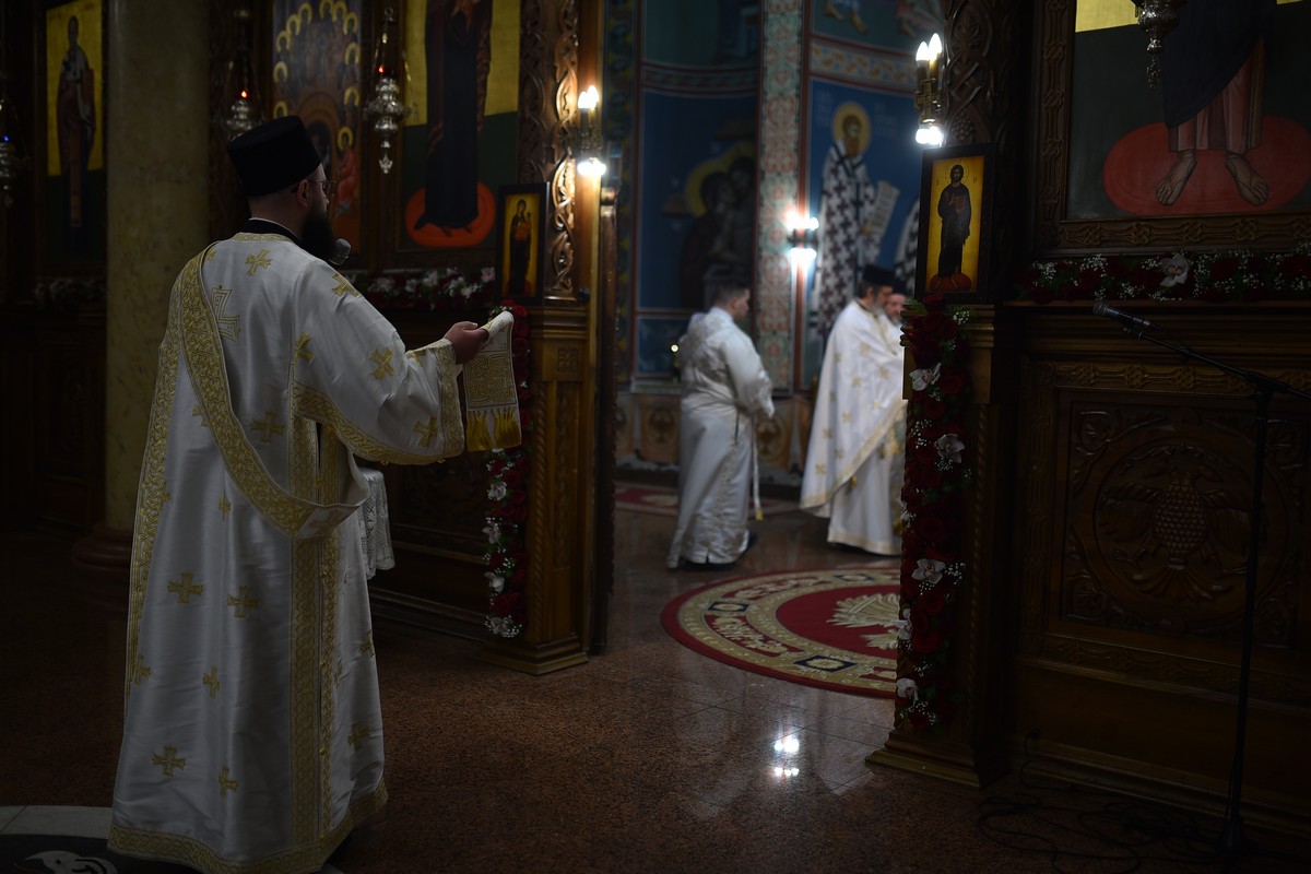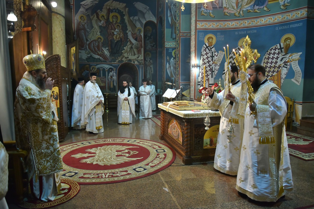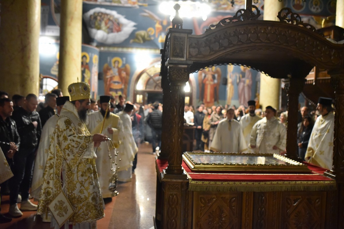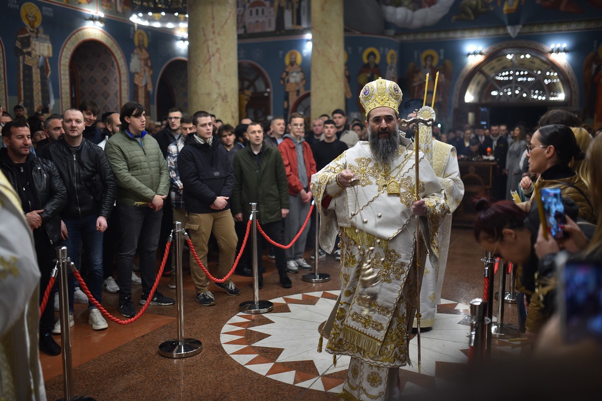 По уласку у храм настављена је јутарња служба, са посебно наглашеним празничним каноном, који својом дубином и радосном поруком све верне уводи у посебно духовно расположење.