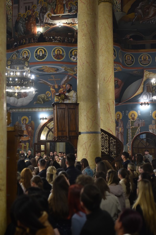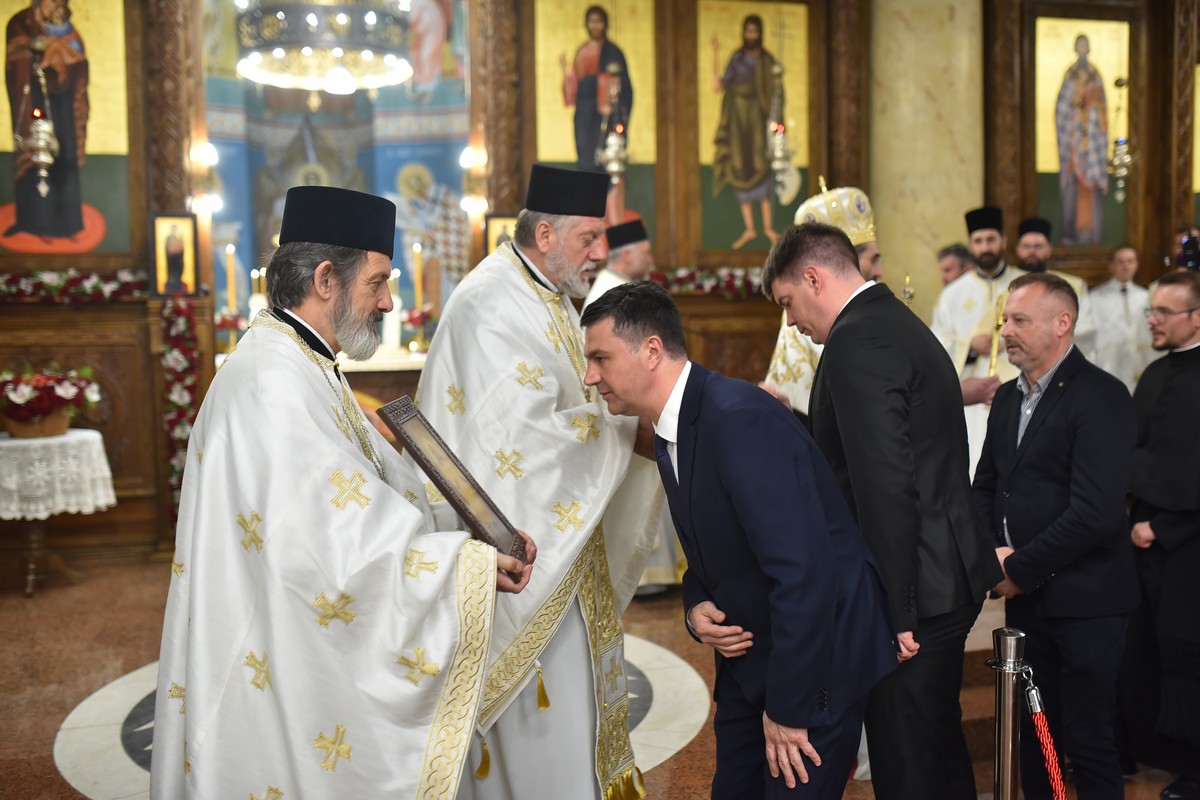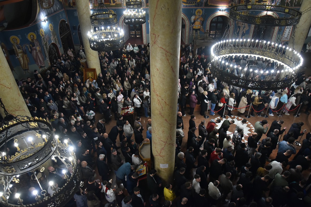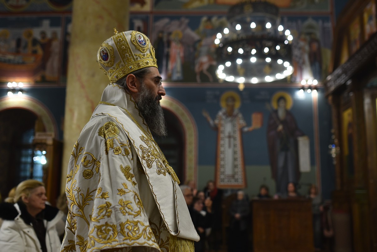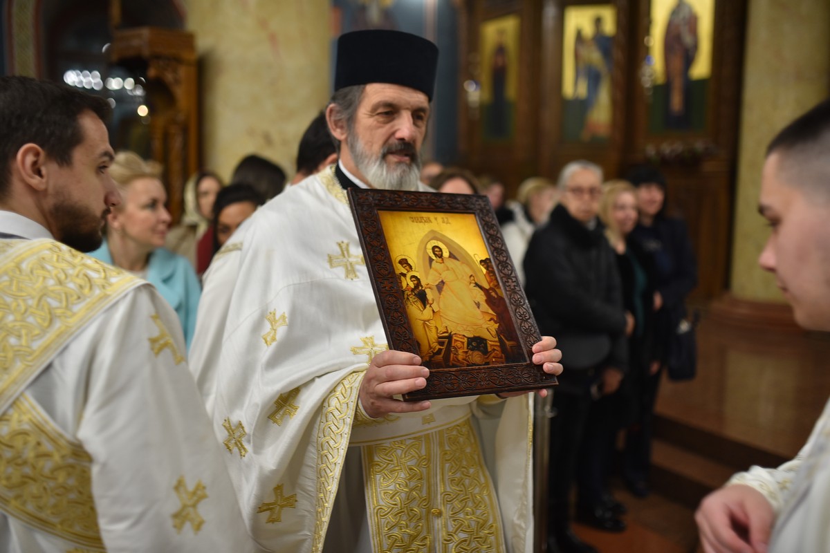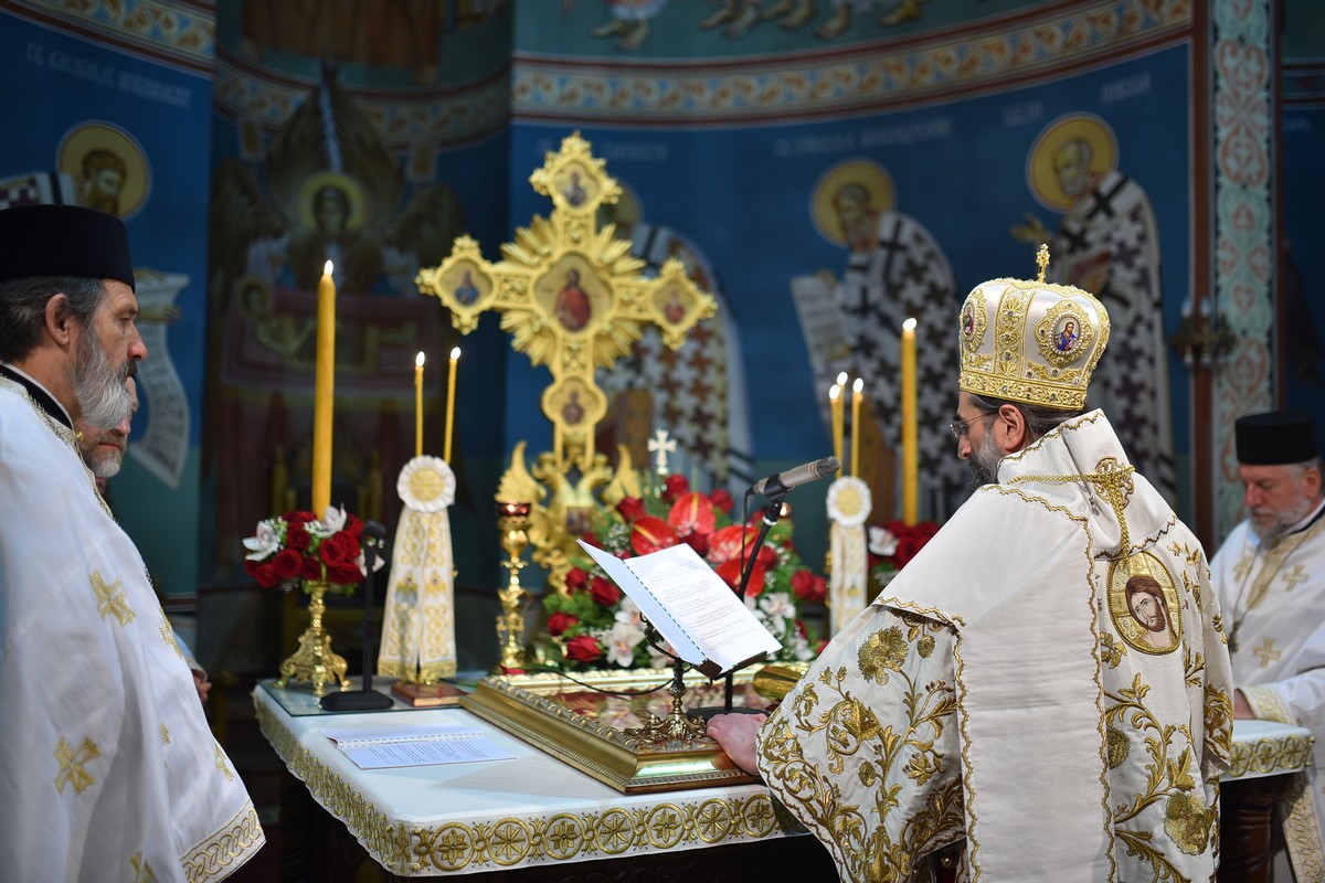 По уласку у храм настављена је јутарња служба, са посебно наглашеним празничним каноном, који својом дубином и радосном поруком све верне уводи у посебно духовно расположење.