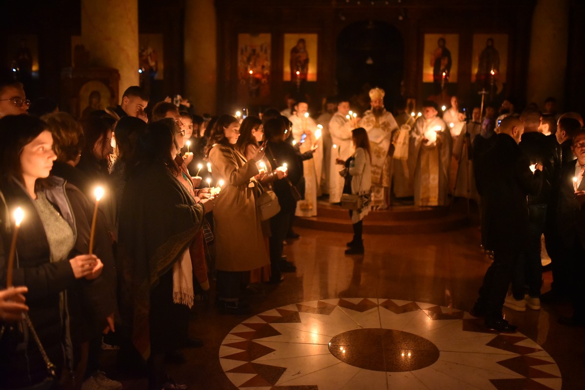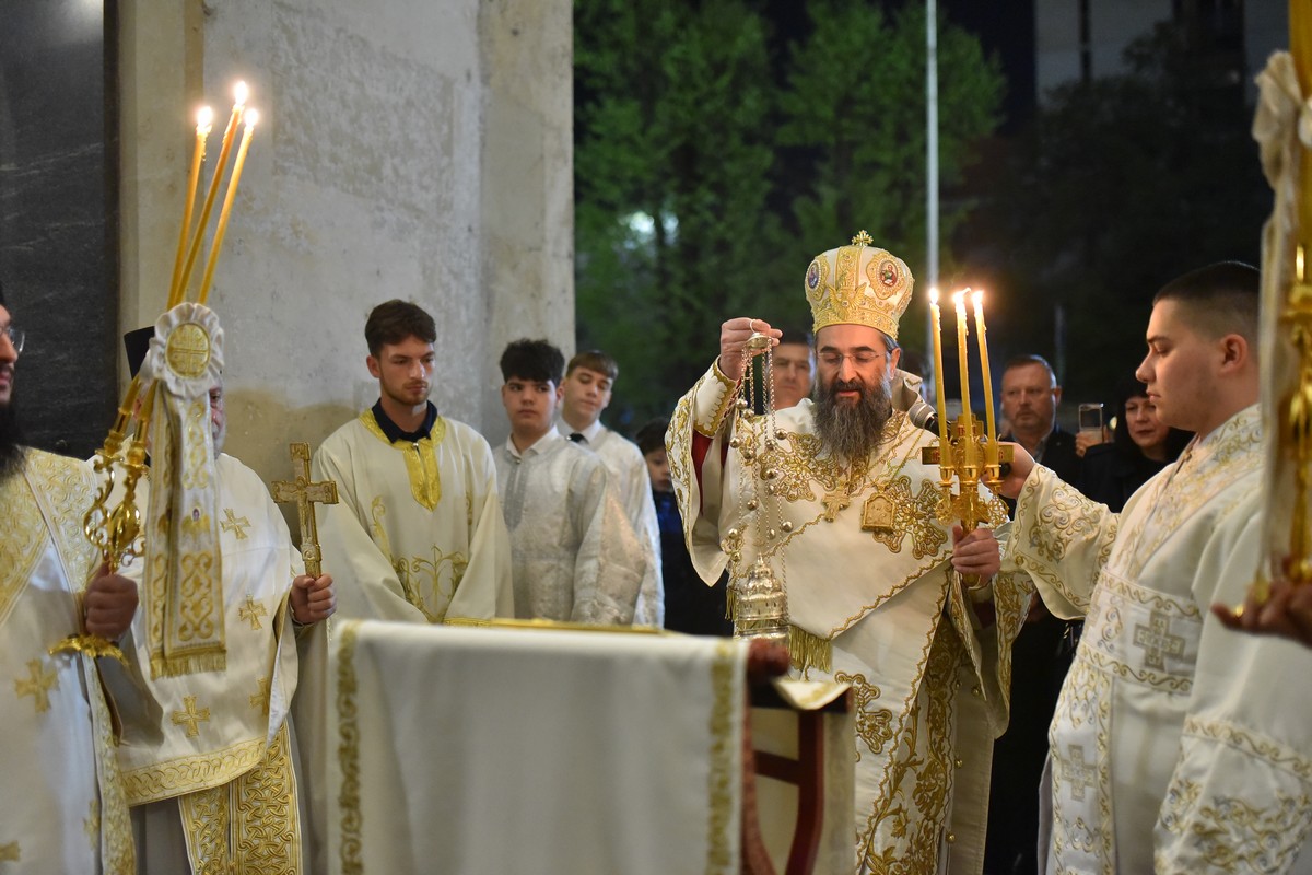 На Васкрс, 12. априла 2026. године, Његово Високопреосвештенство Митрополит нишки г. Арсеније началствовао је радосним пасхалним богослужењем у нишком Саборном храму Силаска Светога Духа на Апостоле.