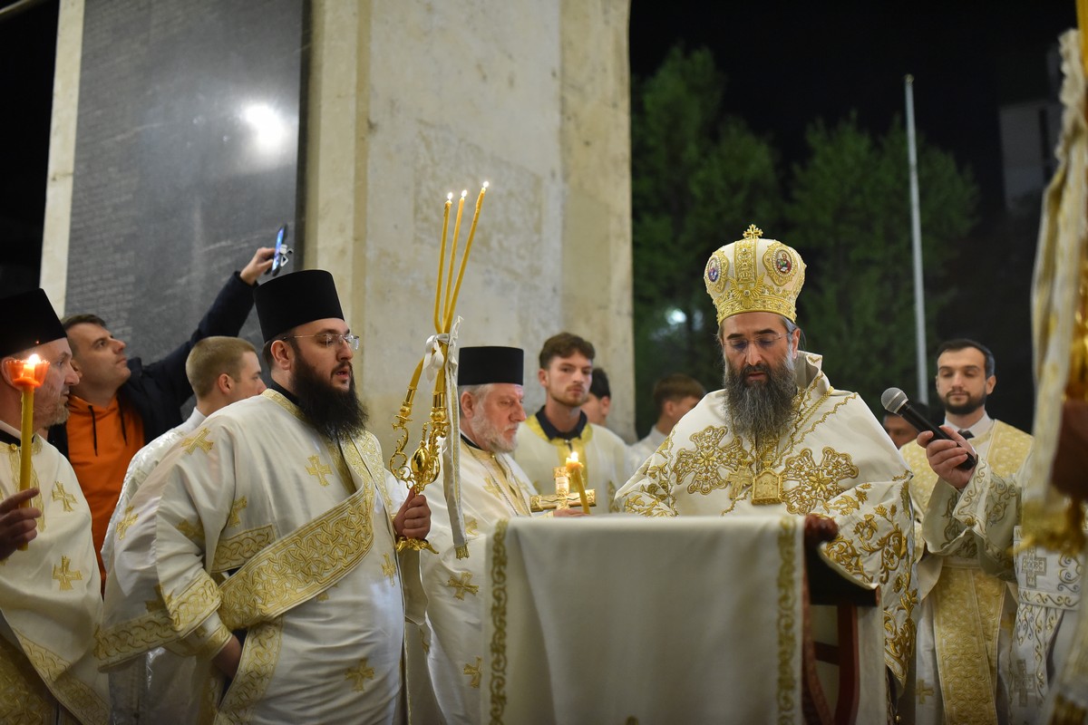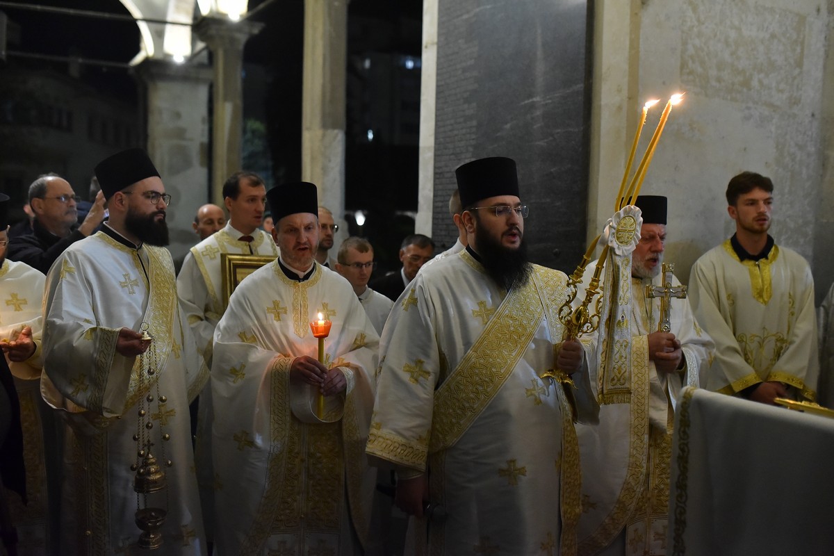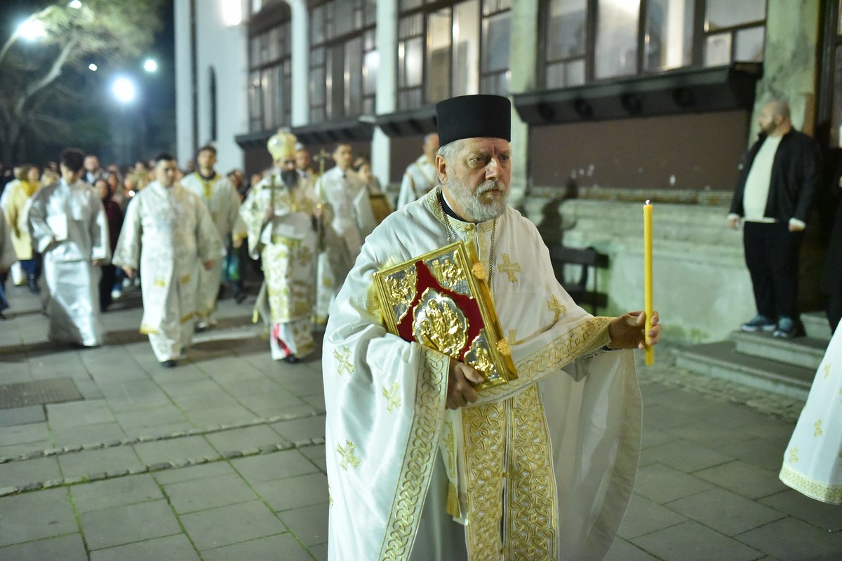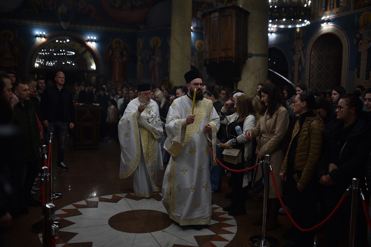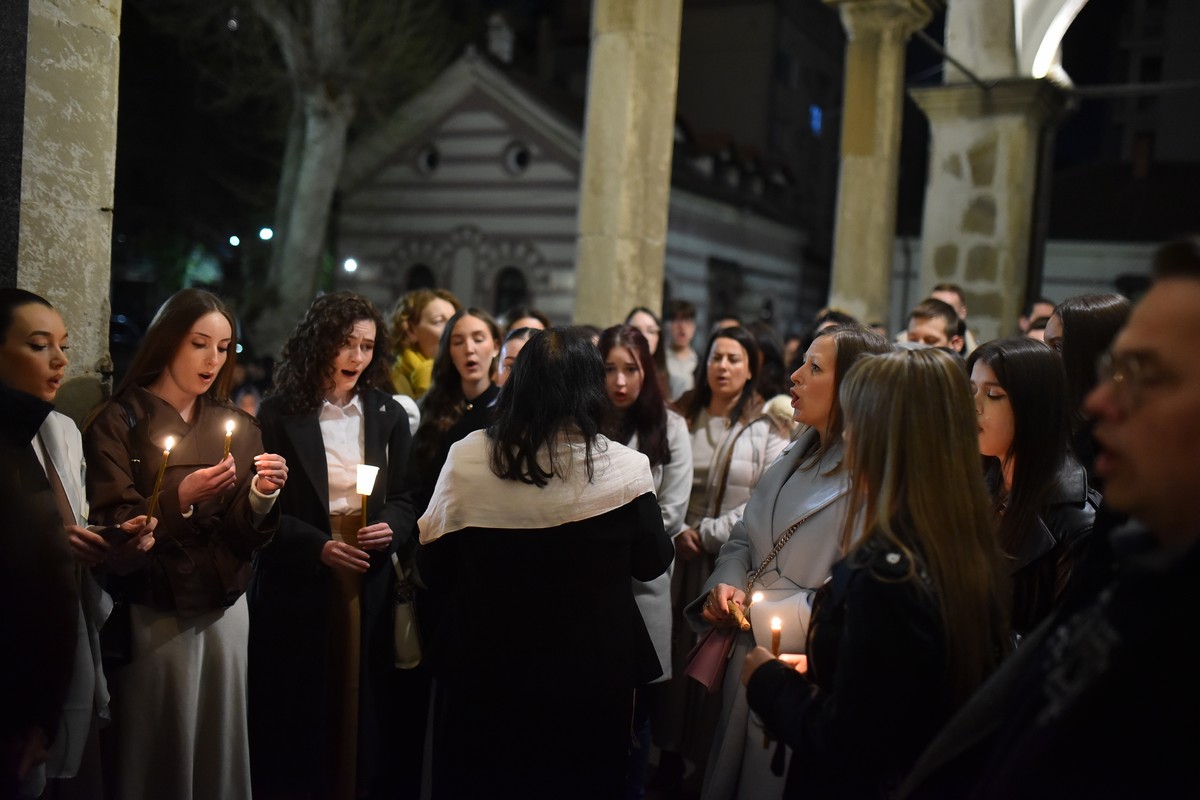 Празнично последовање започето је свечаним изношењем Плаштанице из Гроба Господњег и њеним уношењем у олтар, где ће на Часној Трпези стајати током ових дана радости и торжества. Уследила је величанствена литија, која је, прошавши оближњим градским улицама, окончана повратком у храмовну порту.
