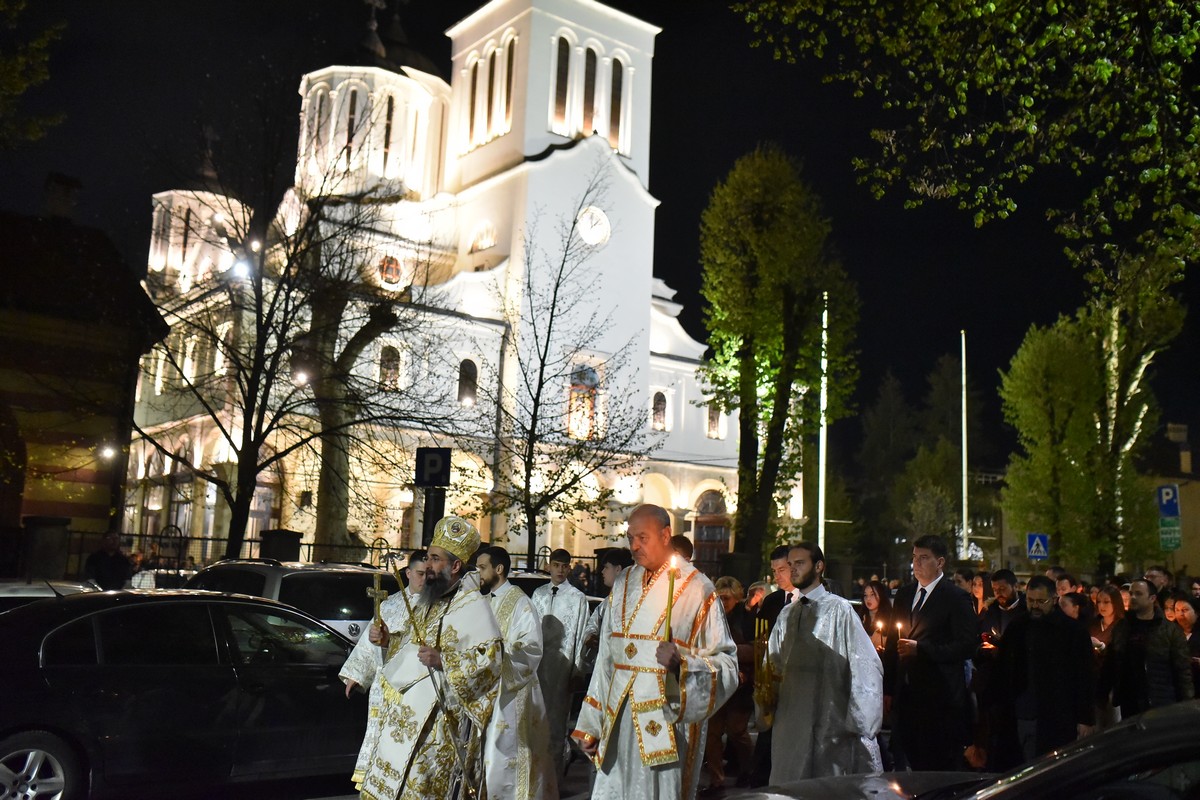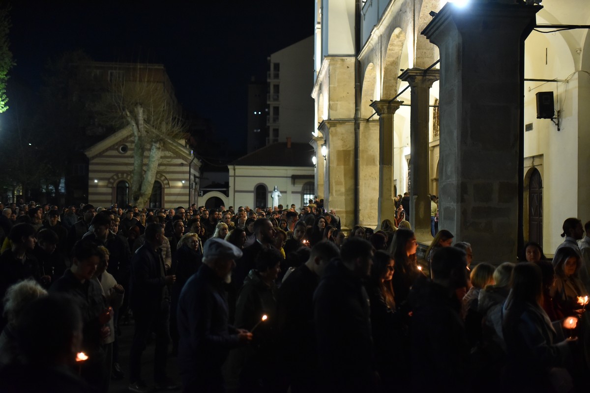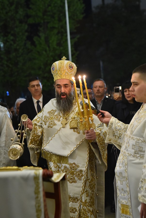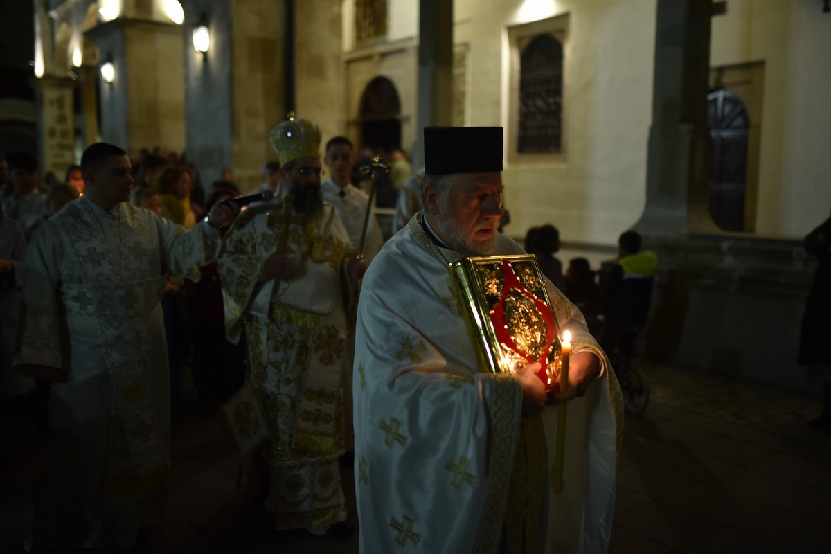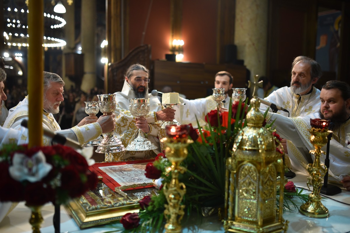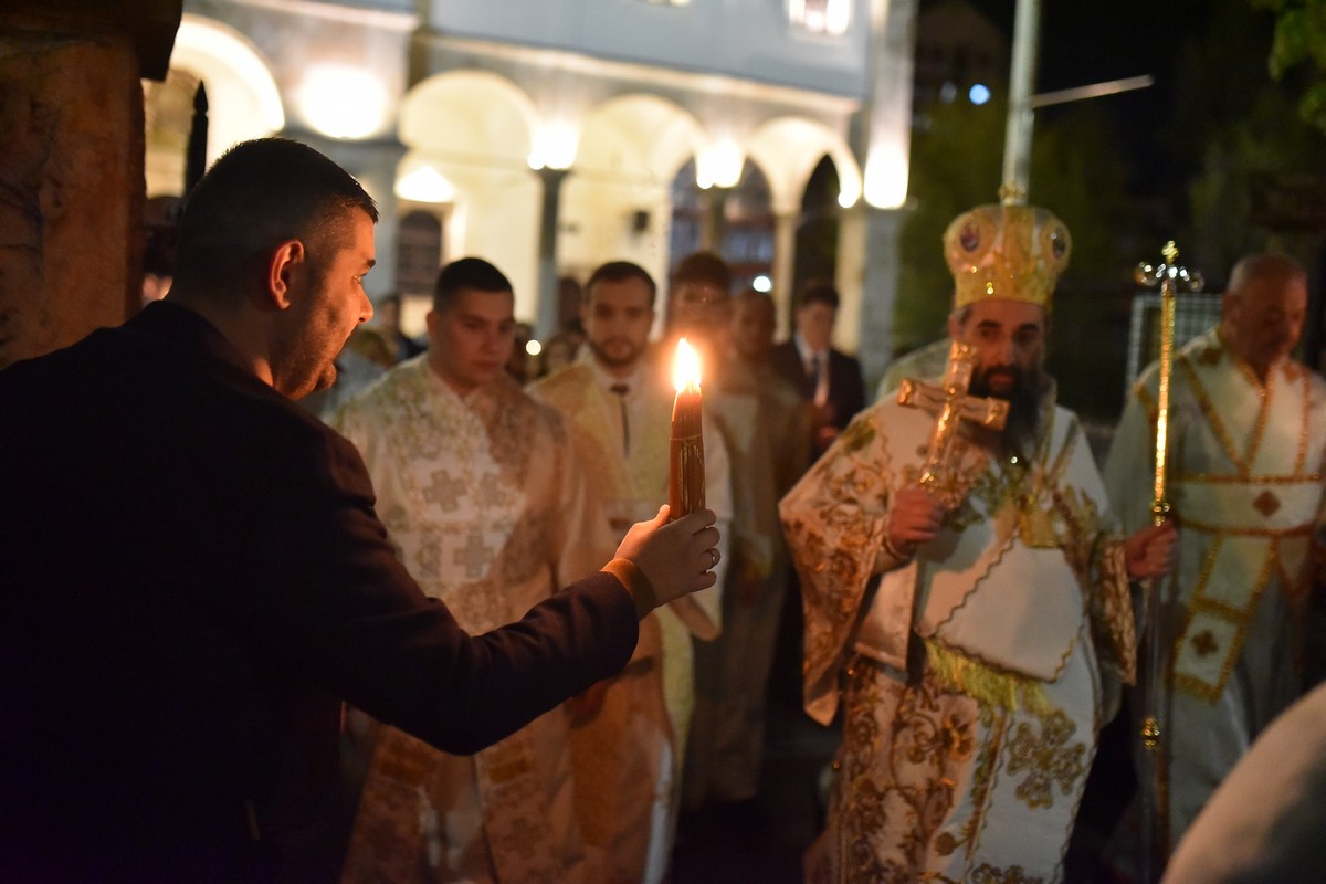 Празнично последовање започето је свечаним изношењем Плаштанице из Гроба Господњег и њеним уношењем у олтар, где ће на Часној Трпези стајати током ових дана радости и торжества. Уследила је величанствена литија, која је, прошавши оближњим градским улицама, окончана повратком у храмовну порту.
