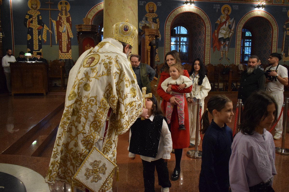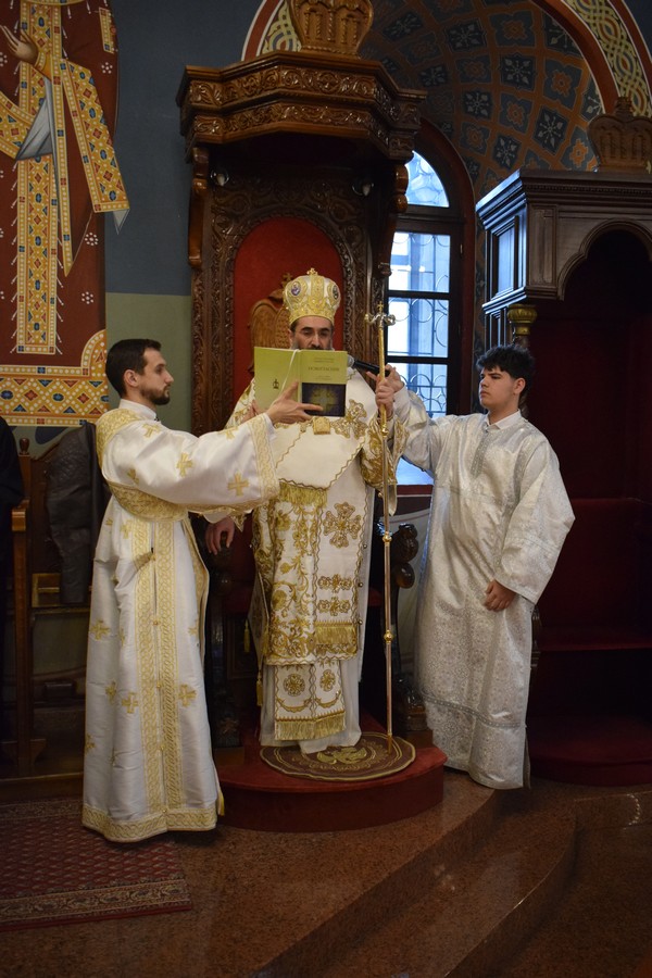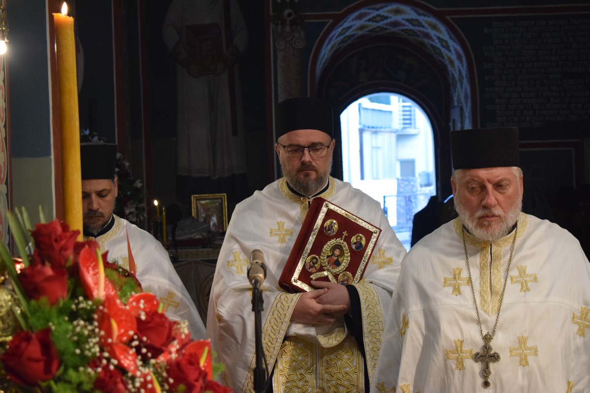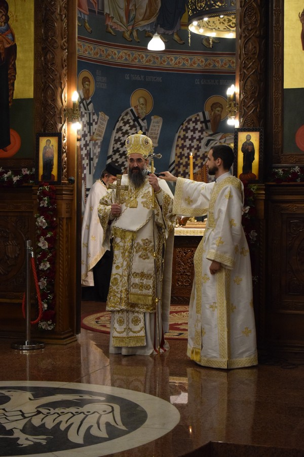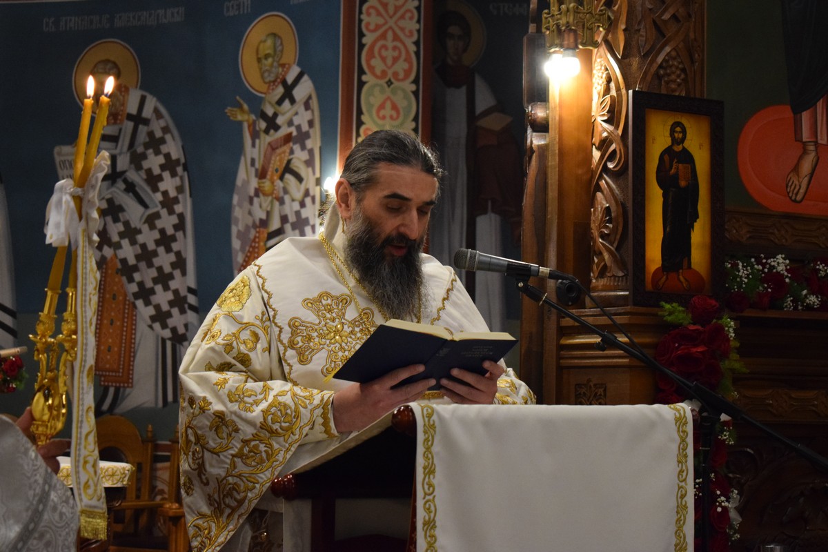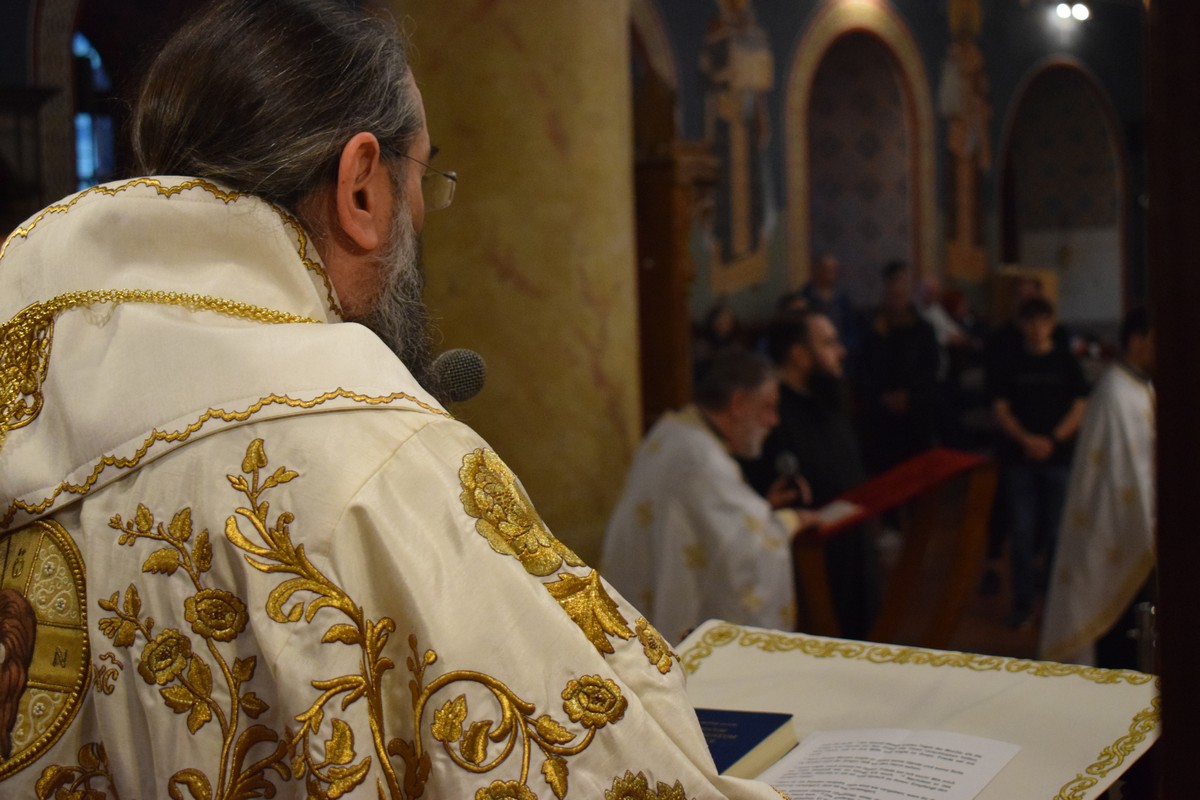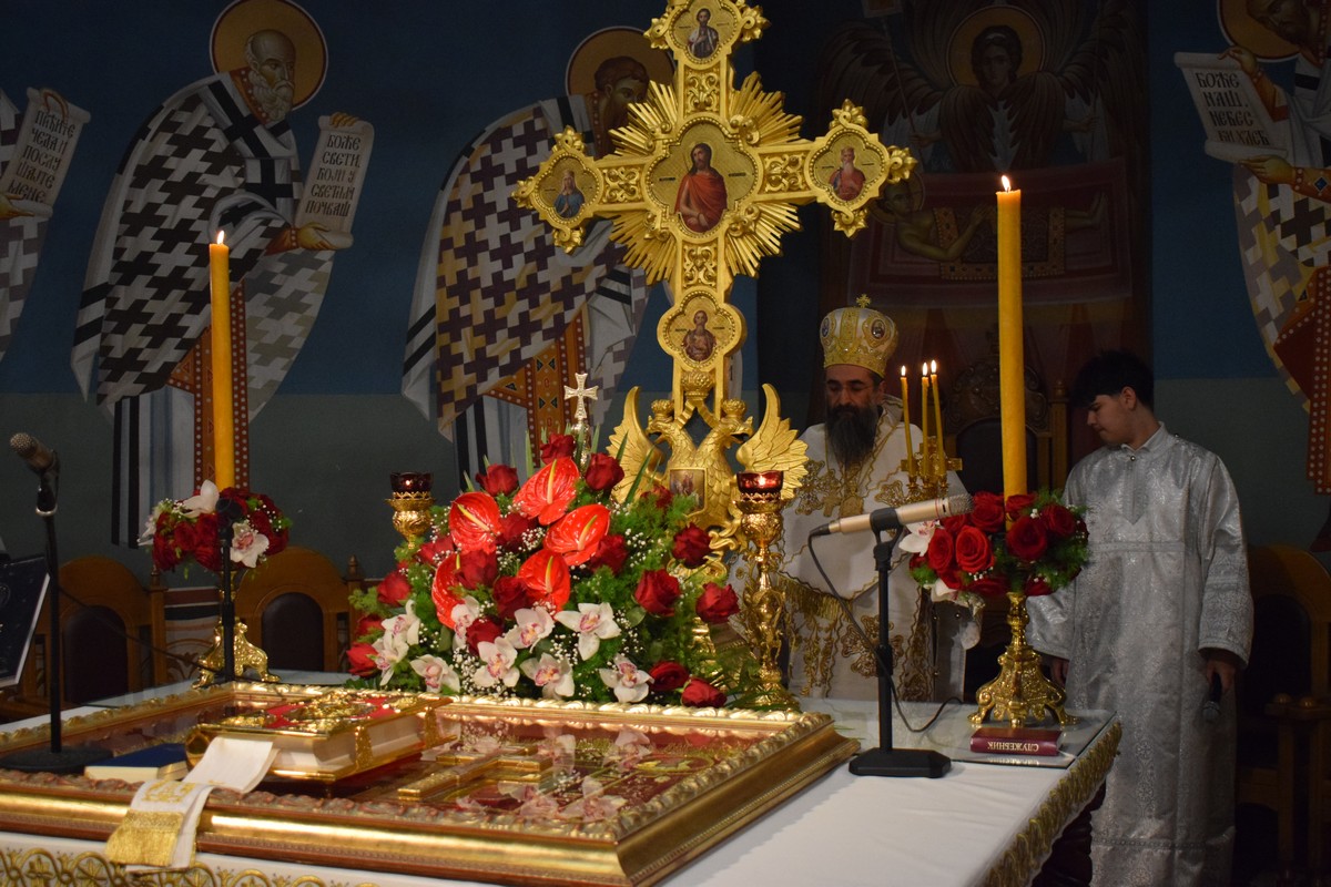 Након Входа и појања Великог прокимена, прописано зачало из Јеванђеља по Јовану је од стране Високопреосвећеног Владике и саслужујућег свештенства прочитано на више светских језика.
