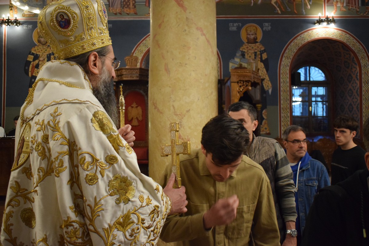 У недељу, 12. априла 2026. године, Његово Високопреосвештенство Митрополит нишки г. Арсеније служио је Пасхално вечерње богослужење у нишкој Саборној цркви Силаска Светога Духа на Апостоле.